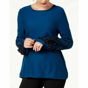 Alfani Women's Blue Embellished Bishop Sleeves Pullover Sweater MSRP $89 A3803