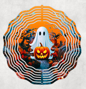 Fantasma con zucca Halloween 10" giravento fatto a mano