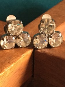 Vintage Paire Clips Boucles d'Oreilles Argentées et Strass