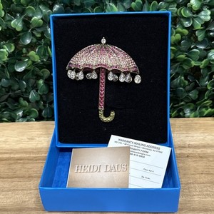 Spilla per ombrello Heidi Daus gocce di pioggia su cristallo rosa strass nuova con scatola