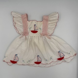 Top vintage per bambini nautico 2T - rosso Gingham, barche a vela ricamate, Pinafore, macchiato EUR 11,14