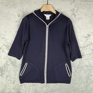 Esclusivamente giacca Misook donna grande blu maglia zip cappuccio cardigan vintage