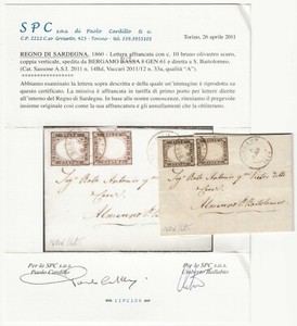 1863 Sardegna - Lettera per Vittoria con 5 c. Sassone 13Db e 10 c. Sassone 14E