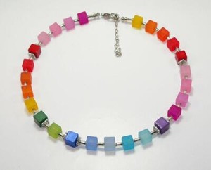 Collana Catena Cubo Vetro Crash Multicolore Colorato Lungo 50cm 246