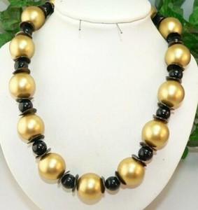 Collana collana perle opache e nere lucide cm 51 circa bigiotteria 379e