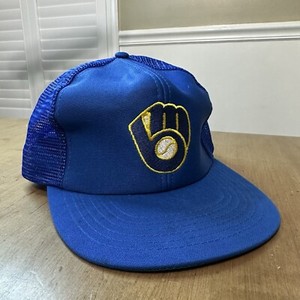 VINTAGE Milwaukee Brewers Cappello Camionista Berretto Snap Back Maglia Medium Large