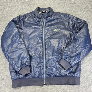Giacca bomber vintage IZOD LACOSTE uomo XL blu navy giacca a vento cappuccio nascosto