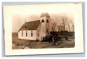 Vintage 1900's RPPC Postcard Group Photo Country Church