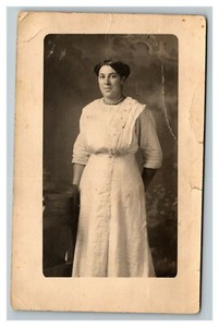 Foto cartolina vintage 1910 RPPC di ragazza in abito di conferma