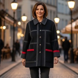 Giacca cappotto vintage LORING donna taglia XL nero grigio rosso lana geometrico retro tasche