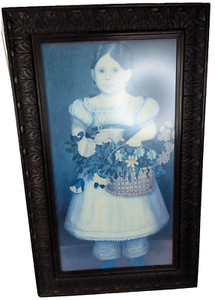 Stampa artistica litografia incorniciata ragazza con cesto di fiori art nouveau 31,5x19,5"