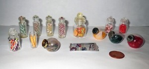 Grande lotto casa delle bambole antica ACCESSORIO CARAMELLE MINIATURA collezione IN BARATTOLI VETRO EUR 84,51