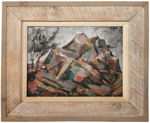 RUTH VAN CLEVE (USA, 1898-1992) VINTAGE MODERNISTA SGND PAESAGGIO ASTRATTO O/B, FRMD