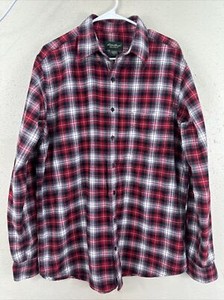 EDDIE BAUER CAMICIA FLANELLA UOMO ABBOTTONATA VESTIBILITÀ RILASSATA PLAID ROSSO NERO Tg L T EUR 11,35