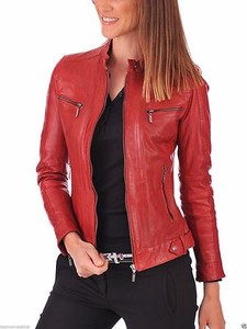 Giacca Rossa Donna Pelle d'Agnello Morbida Vera Pelle Moto Slim Fit Biker Jacket EUR 59,83 a EUR 100,11