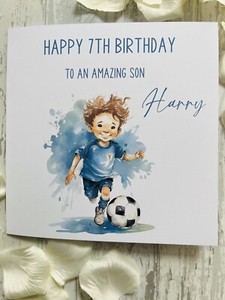 Biglietto di compleanno calcio bambino personalizzato figlia nipote nipote 8 9 10 11 EUR 5,10 a EUR 6,23