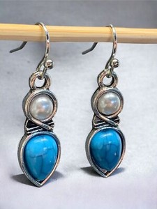 Orecchini traforati iridescenti, trasparenti, infradito cabochon argento pendente goccia 1" EUR 12,96