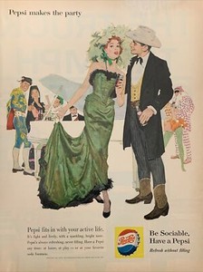 Pubblicità vintage stampa Pepsi Cola 1960, la spiaggia dei socievoli, l'oceano, lo snorkeling EUR 8,38