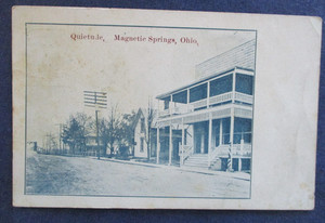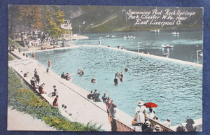 Exceptionally well packed postcard: Hand crafted sleeve of cardboard and paper, postcard carefully secured to paper so it was "floating" and would not get its corners bumped while the cardboard protected it against bending. Homemade; ingenious. Postcard colors "as described" (true to item listing photo); good price; fast shipping. Mailed with exotic "quilt" of 5 old stamps instead of modern boring 1. Did I say how much I LOVE the postcard?!: LOVELY small town pool scene with rural background...