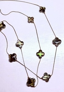 Collana Stazione Quadrifoglio Madreperla Doppio Lato Placca Oro Giallo 36” L