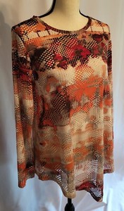 Top copricostume da bagno donna TIE DYE rete boho M arancione trasparente manica lunga