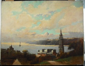 F Levasseur Paysage de bords de mer en Bretagne les ïles du ponant 1930 HST 46cm