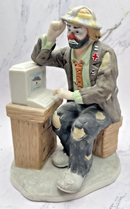 Flambro Emmett Kelly Jr. Computer Whiz pagliaccio porcellana vintage alto 6,5 pollici