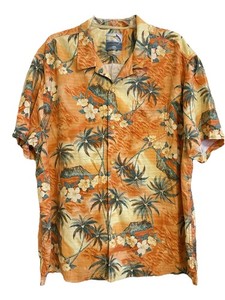 Camicia Tommy Bahama Island Zone 100% seta Camp SS arancione tropicale taglia XLX/TGT