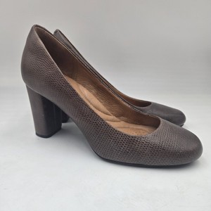 Scarpe décolleté business Clarks Indigo Loyal suola donna 6M pelle marrone tacco a blocco 3 1/4"