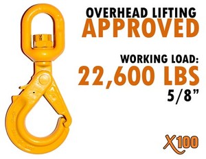 Gancio autobloccante girevole 5/8 grado 100 22.600 libbre chiusura positiva gru sartiame