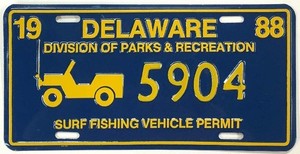 Vintage Delaware 1988 Surf Fishing Permit License Plate 5904 Jeep CJ Booster