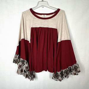 Top Umgee S marrone colorblock maniche a campana Popover boho rilassato casual alla moda