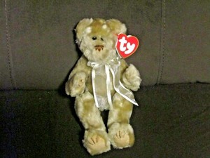 TY BEANIE BABY Bear "BEVERLY" Beige Plush 8" Jointed, Handmade in China 1993 NWT