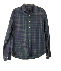 Camicia Untuckit Check Bottone Frontale Uomo M Plaid Verde Blu Relaxed Fit Casual