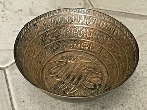 Vintage Hand Carved Urdu Rare Islamic Brass Bowl Kattori Decorative Collectible