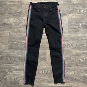 Jeans MADRE taglia 28 vita alta looker sfilacciato alla caviglia trapuntato glitter racer nero