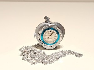 OROLOGIO MECCANICO DONNA VINTAGE BELLISSIMO QUADRANTE BLU CROMATO PENDENTE "LUCERNA"