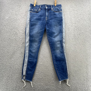 7 For All Mankind Women Jeans 27 Two-Tone Stripe Tapered 70's Crop Preppy Retro