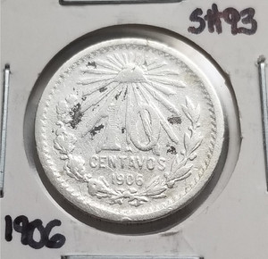 Messico 10 Centesimi 1906 .800 Moneta Argento, Misura Grande, 10 Centavos Moneda Plata .800 EUR 10,410 offerte5g 17h 41m