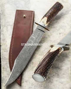 Coltello Bowie Anlter caccia cervo outdoor acciaio damascato artigianale premium