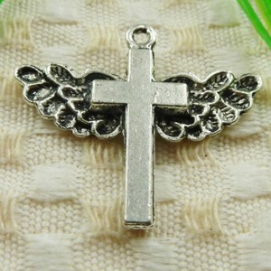 63 Pezzi Ciondolo Croce Ala Croce Argento Tibetano 33X29MM S3971 Fai da Te Creazione Gioielli EUR 13,03