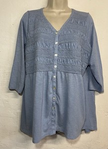 Top tunica J.Jill XL Petite blu chiaro misto cotone manica 3/4 con bottoni scollo a V