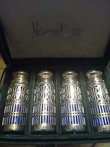 Vintage Neiman Marcus Cobalt Blue Glass/Silver Plate Salt & Pepper Shakers (4)