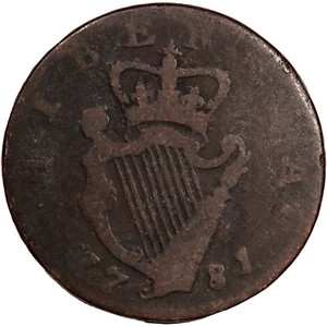 MONETA MEZZO PENNY 1781 IRLANDA HIBERNIA GEORGE III (#4291)