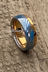 This great looking ring arrived well packaged and in good time. The unique 'Damascus' pattern plated in gold was as described online and looks even better in real life than the promotional photos. The whole purchase process, from the responses to my pre-purchase enquiries to receipt of the ring, was very professional in what proved to be a very smooth transation. Thank you!