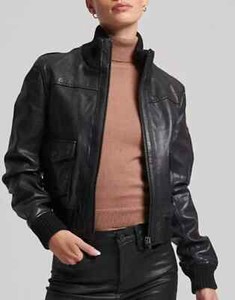 Giacca di pelle nera donna bomber/giacca da volo pura morbida pelle di agnello EUR 90,33 a EUR 104,23