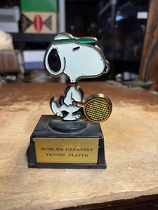 Vintage Peanuts Snoopy Worlds Greatest Tennis Player Trophy 1972 di Aviva 4,75"