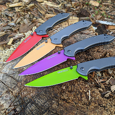 COLTELLO DA TASCA PIEGHEVOLE MOLLA-ASSIST | Lama a stiletto rosa nero donna tattico