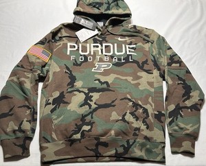Felpa con cappuccio Purdue Boilermakers Nike mimetica adulto apprezzamento militare bandiera USA nuova con etichette