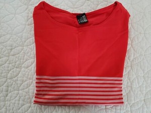 Top Wolford a righe rosse elasticizzato manica corta tinta unita e trasparente. Piccolo